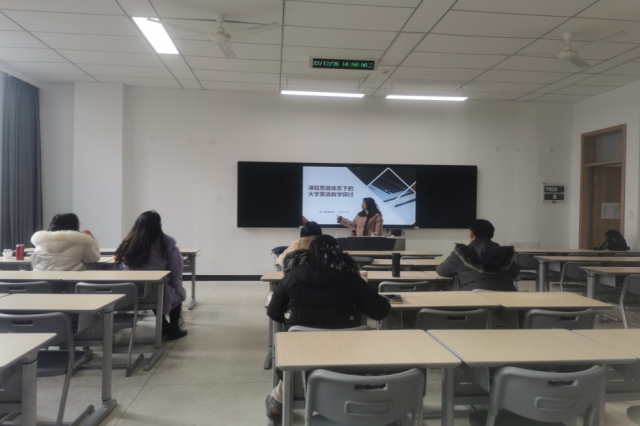 2023年12月26日下午,英语教研室在博学楼107开展了以“课程思政体系下的大学英语教学探索”为主题的教研会,本次会议由刘锦芳老师主持,英语教研室全体教师参加。